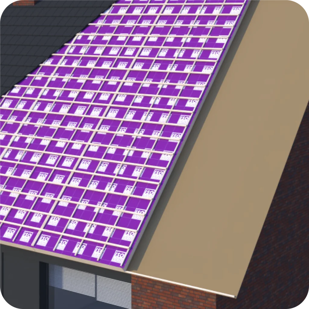 De losse ribben kunnen flexibel worden geplaatst, wat zorgt voor een snelle en efficiënte montage met een naadloze aansluiting op het dak. Dit systeem is perfect voor renovatieprojecten waarbij het bestaande dakbeschot behouden moet blijven. De onderdelen zijn licht van gewicht, eenvoudig te hanteren en ontworpen met focus op duurzaamheid en energie-efficiëntie.